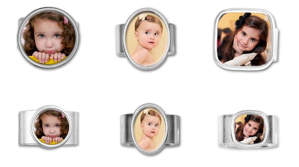 Ring around your finger, a photo shows your love! This antique silver-plated brass ring with your choice of bezel shape keeps your loved ones close at hand. The wide, modern band adjusts to fit almost any size finger.